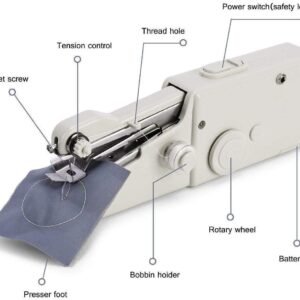 Handy Stitch Sewing Machines for Home Tailoring use, AC/DC Electric Mini Portable Cordless Stitching Machine Handheld Manual Machine (White, Stapler)