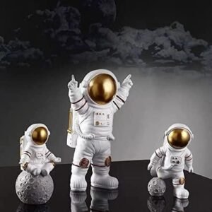 Astronaut Spaceman Statue Ornament Home Office Desktop Figurine Decors Set of 3 – Golden